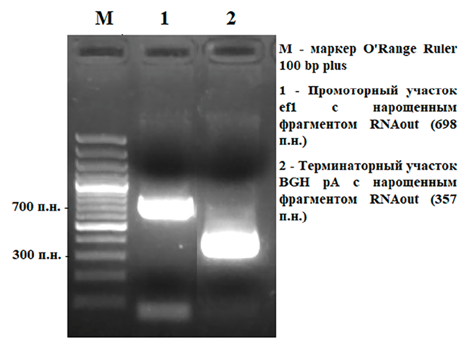 После разработки конструкции вектора получали необходимые для его сборки ПЦР-продукты. Элементы вектора из коммерческих плазмид получали путем ПЦР-амплификации, где векторы использовались в качестве матриц.