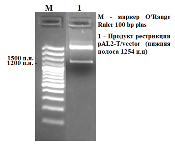 Рис. 5. Электрофорез продуктов рестрикции pAL2-T/vector Источник: составлено авторами