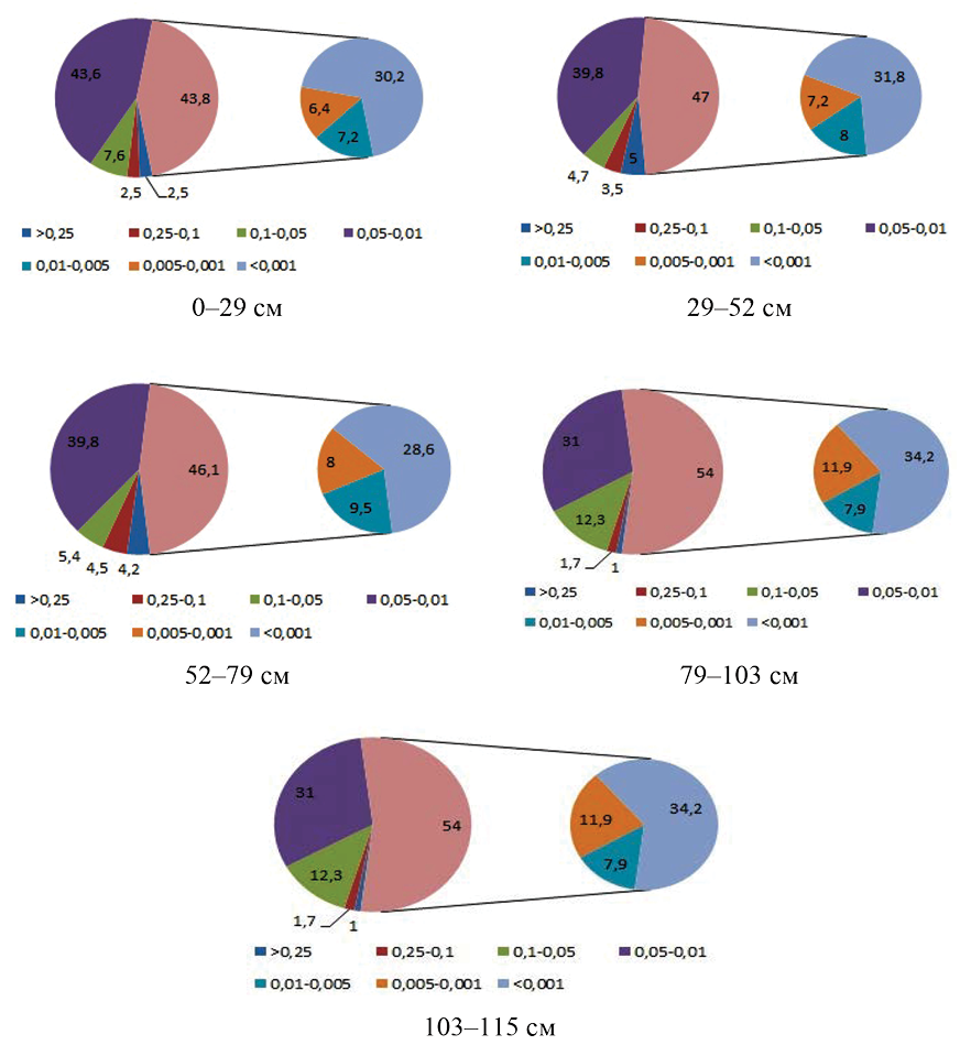 Гранулометрический (механический) состав почв определялся лабораторным методом пипетки, с предварительной подготовкой образцов (удаление карбонатов и органического вещества 3 %-ным H₂O₂ и HCl). Механические фракции распределялись по следующим фракционным группам:
