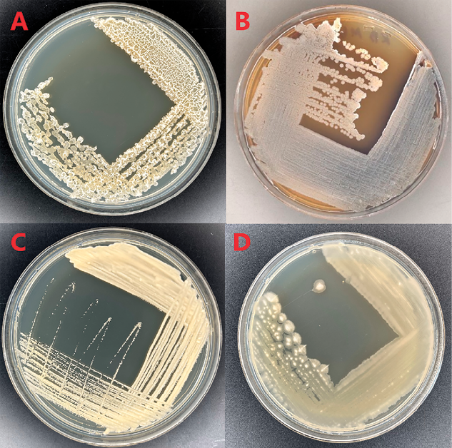 Для исследования были отобраны четыре штамма: MGMM30, MGMM37, MGMM57 и MGMM36. Морфология изолятов приведена на рис. 1.