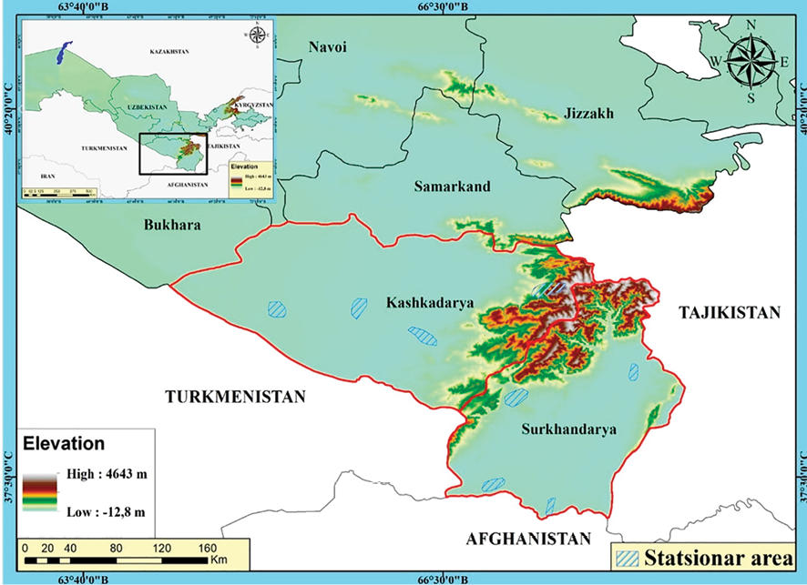 Территория, на которой обнаружены: Гузарский, Яккабогский, Шахрисабзский и Дехканабадский районы Кашкадарьинской области, Шерободский, Байсунский, Джаркурганский и Ангорский районы Сурхандарьинской области.
