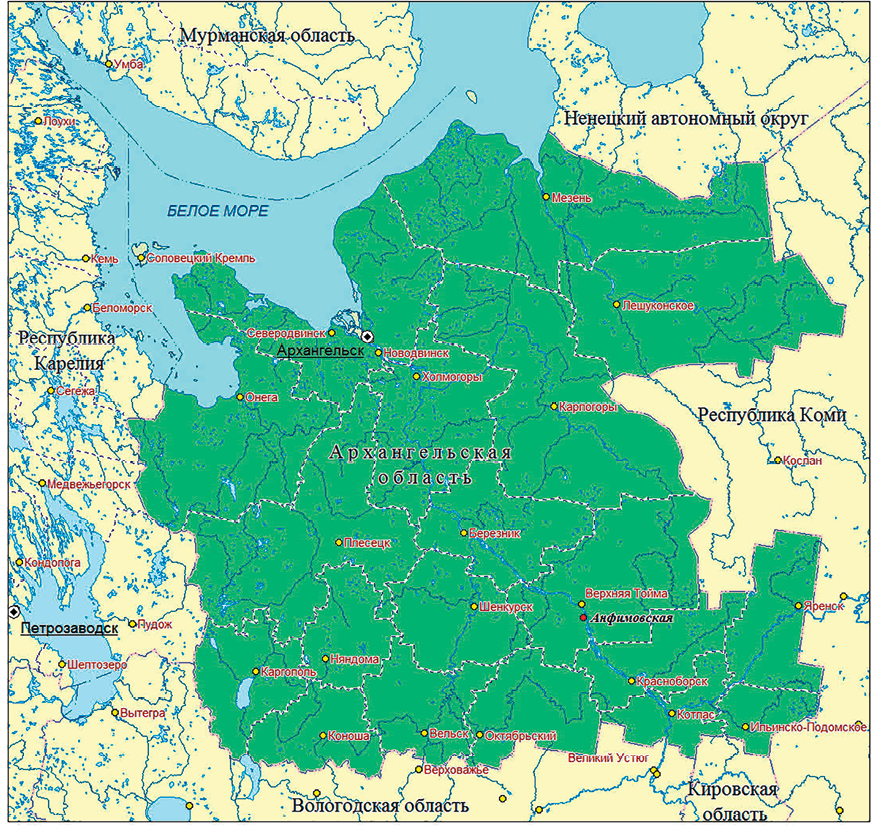 В августе 2014 г. на левом берегу р. Северная Двина в Верхнетоемском муниципальном округе в д. Анфимовская (62°02′10″ с. ш., 45°04′37″ в. д.) (рис. 1) была обнаружена популяция N. peltata в небольшой заводи глубиной от 30 до 70 см основного русла реки (рис. 2).