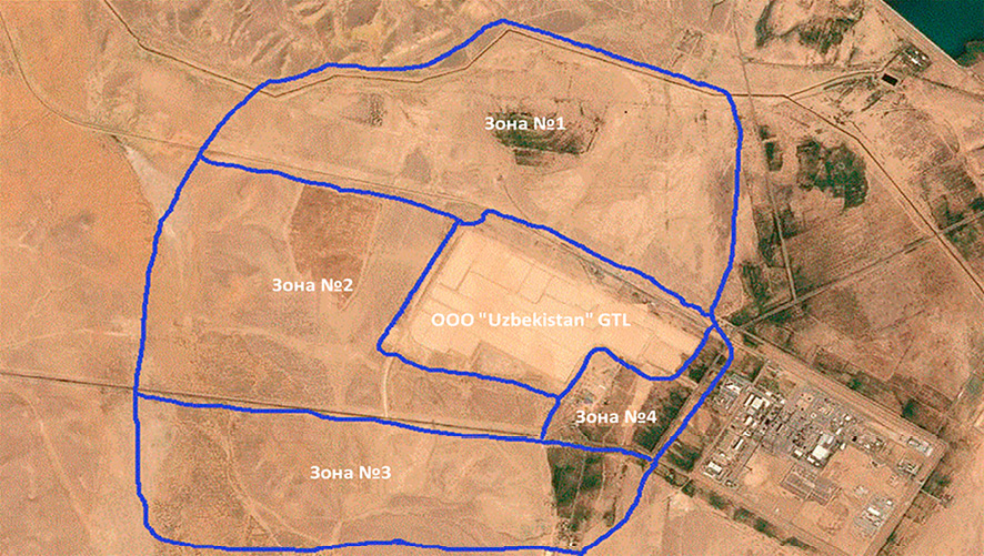 Общая схема мониторинговых участков ООО «Uzbekistan GTL» Примечание: составлен авторами на основе источника https://www.google.com/maps/place/Uzbekistan+GTL (дата обращения: 01.12.2025)