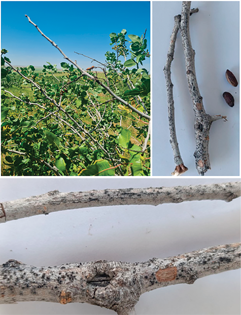 Рис. 1. Ветви фисташки, пораженные Cytospora terebinthi Источник: составлено авторами по результатам данного исследования