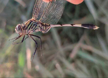 Orthetrum sabina (Drury, 1773). Материал: Туябугузское водохранилище и прилегающие к нему каналы/канавачки (координаты: 40°56'35.5" с. ш. 69°22'02.2" в. д.) – 02.09.2024 (собрано: 4♀, 3♂). Встречается в медленно текущих реках, каналах и зовуp-водах. Общая длина тела 42–45 мм. Голова желто-зеленая; большие фасетчатые глаза занимают значительную часть головы. Грудная часть – зелено-желтая с темными полосами. Длина брюшка 32–34 мм. Первые и третьи сегменты брюшка снизу выпуклые и имеют широкие темные кольца. Длина крыльев 32–36 мм, крылья прозрачные, птеростигмы желтые, у некоторых особей – светло-коричневые; ноги черные. Самцы и самки похожи по форме и размеру; половой диморфизм выражен в окраске и строении гениталий. Взрослые стрекозы питаются бабочками, мухами и комарами (pис. 2). Личинка: тело плоское, без шеи (ensiz), длина 17,0 мм, ширина 5,5 мм. Голова небольшая, вздернутая; глаза крупные и выпуклые. Ноги тонкие и крепкие. Личинки обитают в медленно текущих или стоячих водах, способны переносить слабосоленость. Как и у других видов, личинки питаются личинками комаров и другими беспозвоночными. При благоприятных условиях личинка развивается примерно 1,5 года.